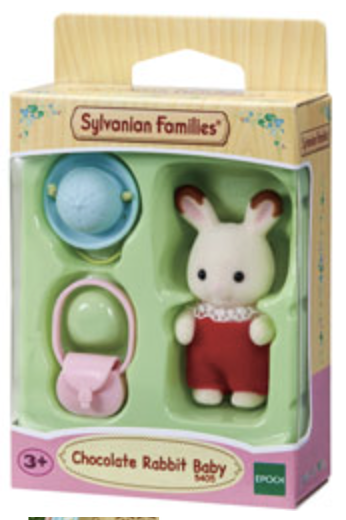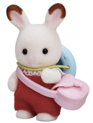 Creme Chocolate Baby comes complete with hat and bag.Creme loves the Pain au Chocolat her dad makes - she'll often greet the other Sylvanians with chocolate around her mouth. She's good friends with the birds in the garden, and shares her buns with them.