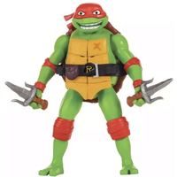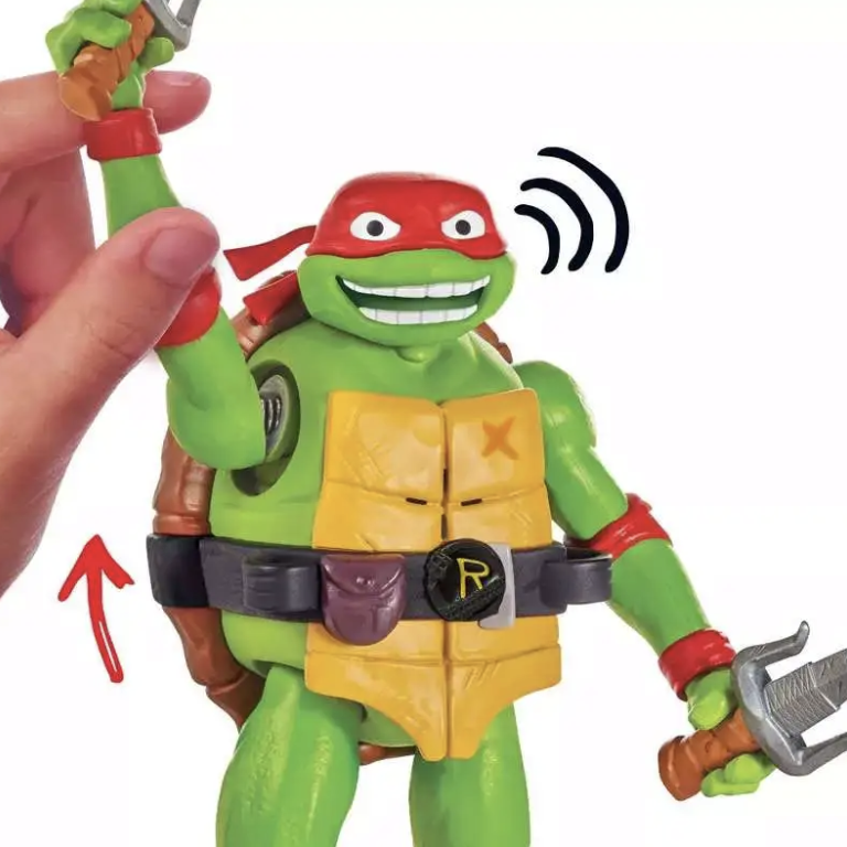 Give a shout out to this 5.5 Ninja Shouts Donatello figure and hes gonna shout right backin his authentic movie voice! Raphael has a big attitude and big dreams, which are (in no particular order) to punch someone so hard they throw up and to be a mixed martial arts fighter. Together, he and his brothers leave their sewer for the city above, fighting crime and learning that there is no "i" in team (even if Raph insists that there is technically a "me" in it). Pull back his arm or leg to hear nine phrases or five sound effects! Keep holding on and hell stretch out or repeat what hes saying! This team of Turtles is going to be undefeetable! (Foot pun intended).