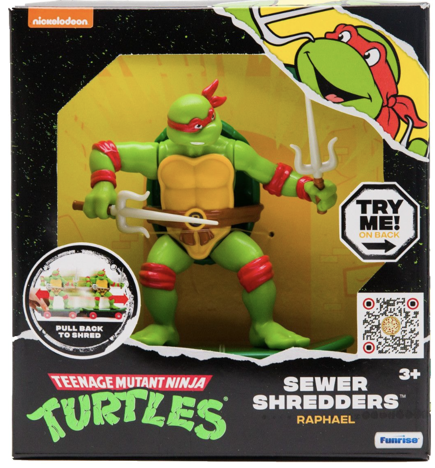 The Teenage Mutant Ninja Turtles Sewer Shredders are 5” skate toys built to battle and cruise! Classically designed with your favorite Teenage Mutant Ninja Turtles holding their weapon of choice. Pull back the Ninja Turtle, let it go and watch it ride! Press the button on the Turtles’ half shells to initiate battle mode! Collect all 4 characters!