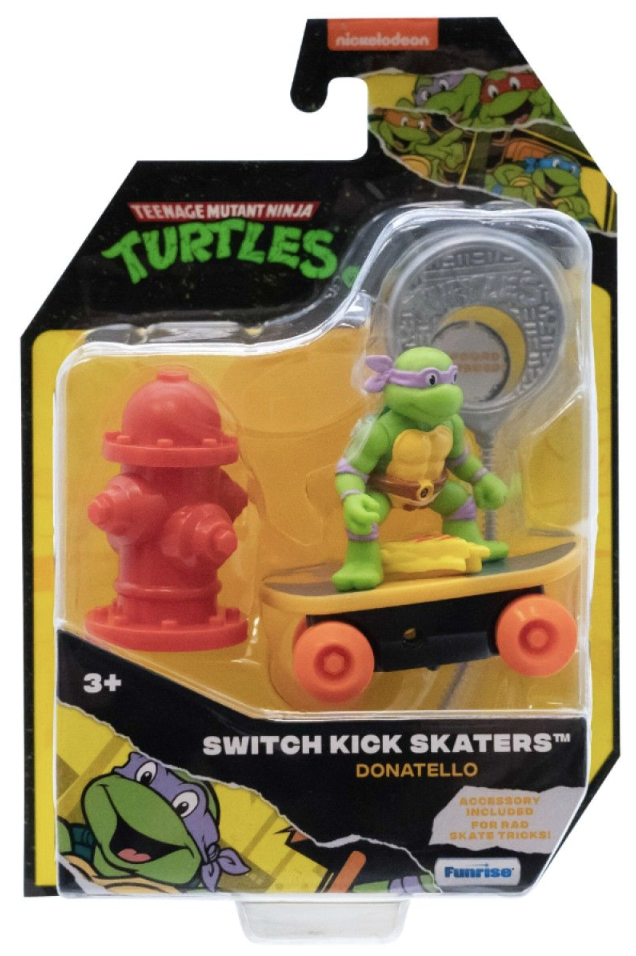 Teenage Mutant Ninja Turtles Switch Kick Skaters is a self-stabilizing skateboard that allows you to perform rad skate tricks, landing on all four wheels every time. The self-stabilizing mechanism (gyro) inside the skateboard is rip-cord powered, so insert the rip-cord, pull it out, and start performing the ultimate tricks. Collect all 4 characters!