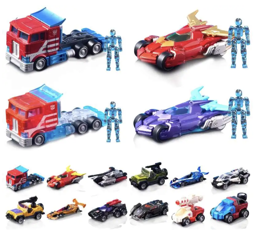 There are 16 Figures to collect in this series. You can collect characters such as Optimus Prime, Rodimus Prime, Scamper, Hound, Mirage, Prowl, Dragstrip, Runabout, Megatron, Swerve, Gears, Swindle, Optimus Prime Titanium Edition, Rodimus Prime Titanium Edition, Optimus Prime Hologram Edition and Rodimus Prime Radiant Edition.