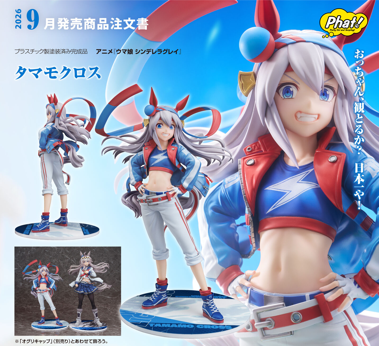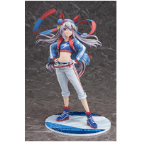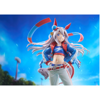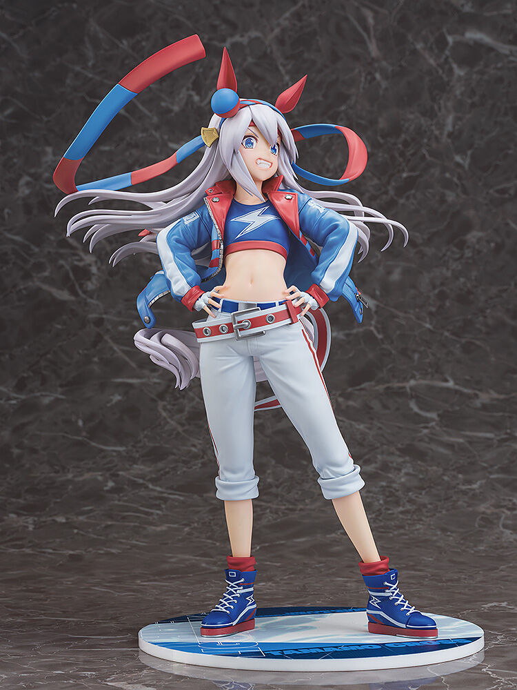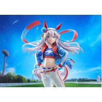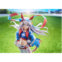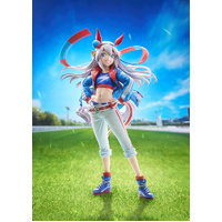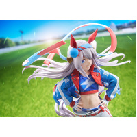 From "Umamusume: Cinderella Gray" comes a 1/7 scale figure of Tamamo Cross, nicknamed the "White Lightning"! Tamamo Cross has been sculpted in a confident pose, wearing a sharp and eager grin on her face. Her flutterinhg jacket, long, wavy hair and tail have all been carefully sculpted to create a dynamic figure. Her eye-catching blue and red outfit has also been carefully painted and recreated to the tiniest details. The stitching on her shorts, the metallic finish of her buckle and the logo on her sneakers have all been incorporated into the figure's design to make it as realistic as possible. The base of the figure features a "zone" design, allowing for an immersive display. Display her with Oguri Cap (sold separately) to bring the "Umamusume: Cinderella Gray" series to life! Be sure to add this figure of Tamamo Cross aiming for the top to your collection!