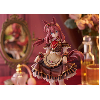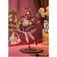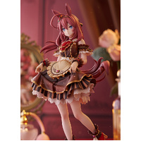 The figure features Ruby in a Valentine's Day [CODE: Grasage] outfit with her skirt fluttering outstretched. Dressed in her Valentine’s outfit, [CODE: ICING], Mihono Bourbon has been brought to life in a graceful pose, gently spreading her skirt. Her soft smile conveys a deep trust in her Master, radiating a charm that makes you want to stay by her side forever.