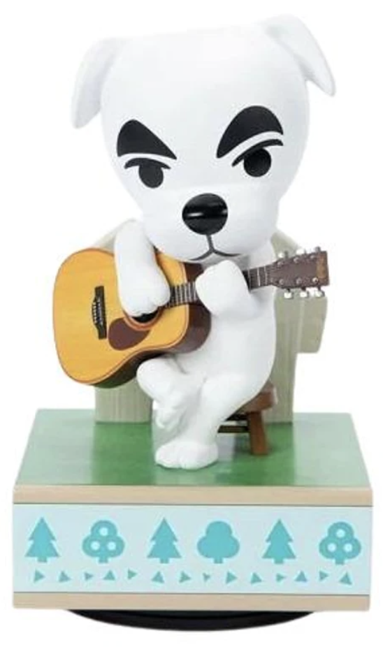 The statue faithfully captures K.K. Slider’s appe­arance, from his black, dot-like eyes to his white fur. He is depicted playing a guitar, capturing his laid-back nature and passion for music. The highly detailed base is inspired by the Animal Crossing: New Horizons art style.