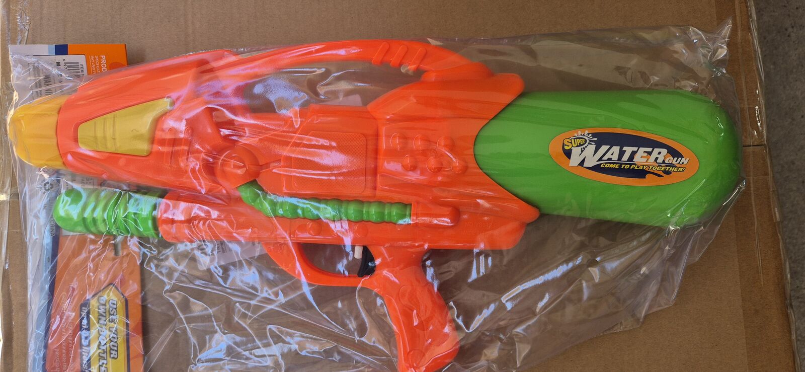 Drench your friends and family, with this super water pump action pressurised, water gun. Fires up to 8 metres. Compatible with your own water bottles for a quick reload. 50cm long.