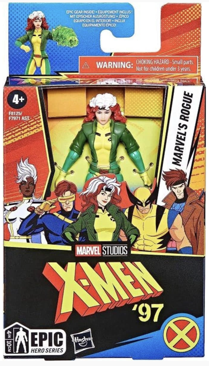 Create epic and powerful pretend battles and adventures with this X-Men ’97 Marvel’s Rogue action figure. This 4-inch-scale action figure is part of the Epic Hero Series and has 9 points of articulation for awesome poseable play! With a clip-on epic gear accessory included, kids will love pretending to be their favorite mutant and using the figure’s mutant powers in battles! Imagine action-packed adventures with Marvel’s Rogue. This toy makes a great gift for Marvel fans and kids ages 4 and up!